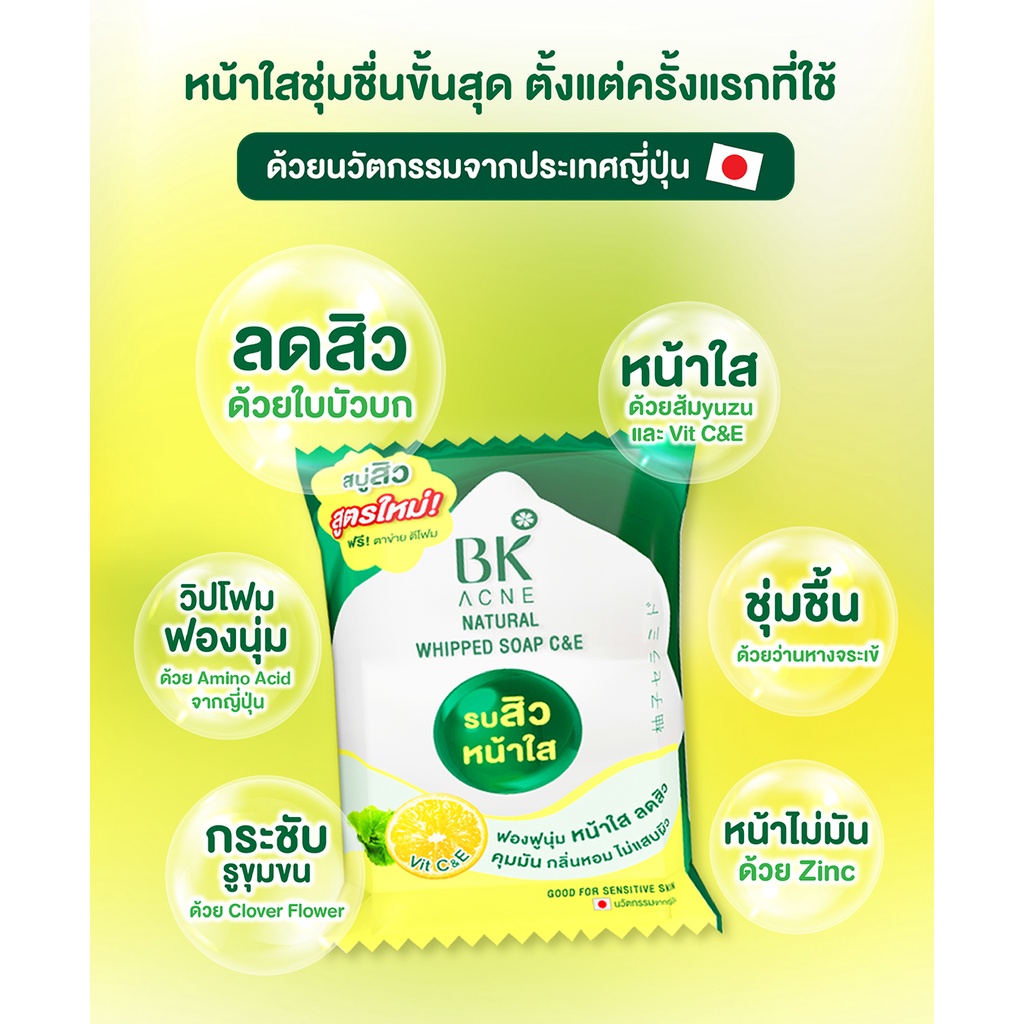 (4ก้อน/กล่อง) BK Acne Natural Whipped Soap บีเค แอคเน่ เนเชอรัล วิป โซป สบู่รบสิว [1150]