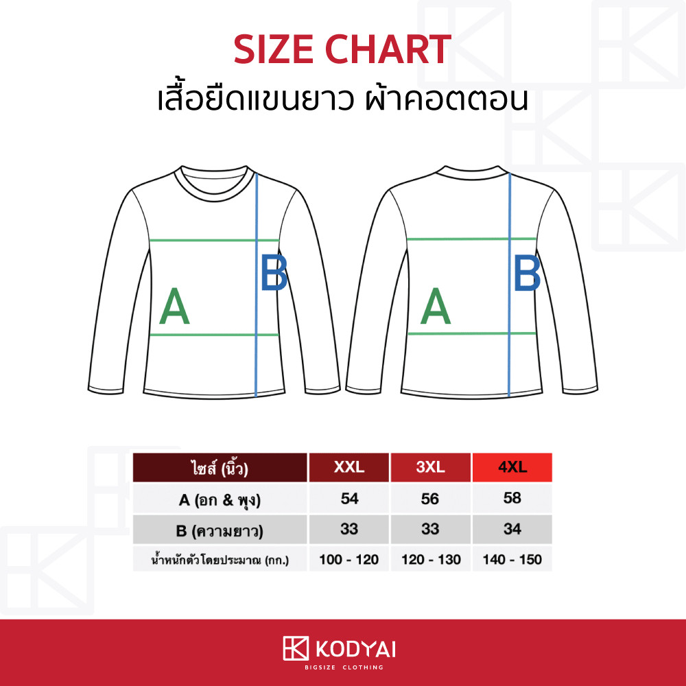 เสื้อแขนยาว อก 54-58 นิ้ว ไซส์ใหญ๋พิเศษ เสื้อคนอ้วน รหัส 660 : KODYAI