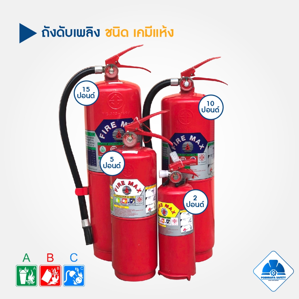 ถังดับเพลิงเคมีแห้ง ขนาด 2 ปอนด์ 5 ปอนด์ 10 ปอนด์ และ 15 ปอนด์