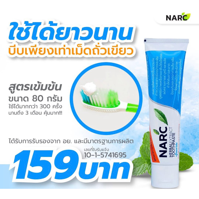 NARC ยาสีฟันสมุนไพร 6 ชนิด ผสมฟลูออไรด์ 159 บาท