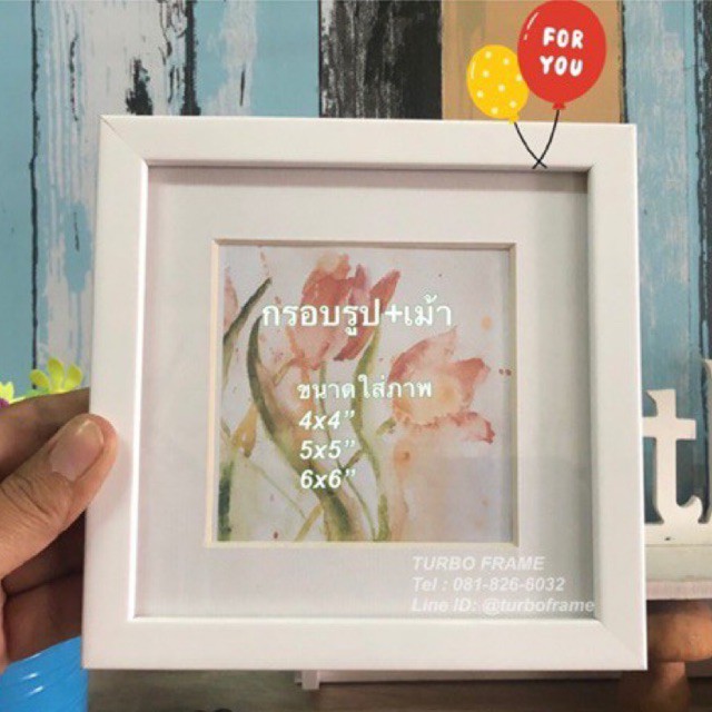 กรอบรูปพร้อมเม้าสีหวานน่ารัก ขนาดสำหรับภาพ 4x4”, 5x5",6x6",7x7", 4x6”, 5x7", 6x8", A5 **พร้อมกระจก ขาตั้ง หูแหวนผนัง**