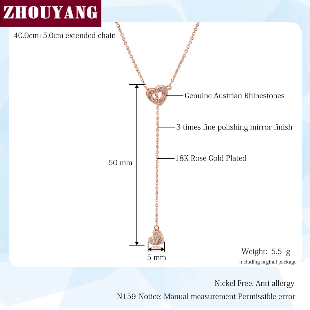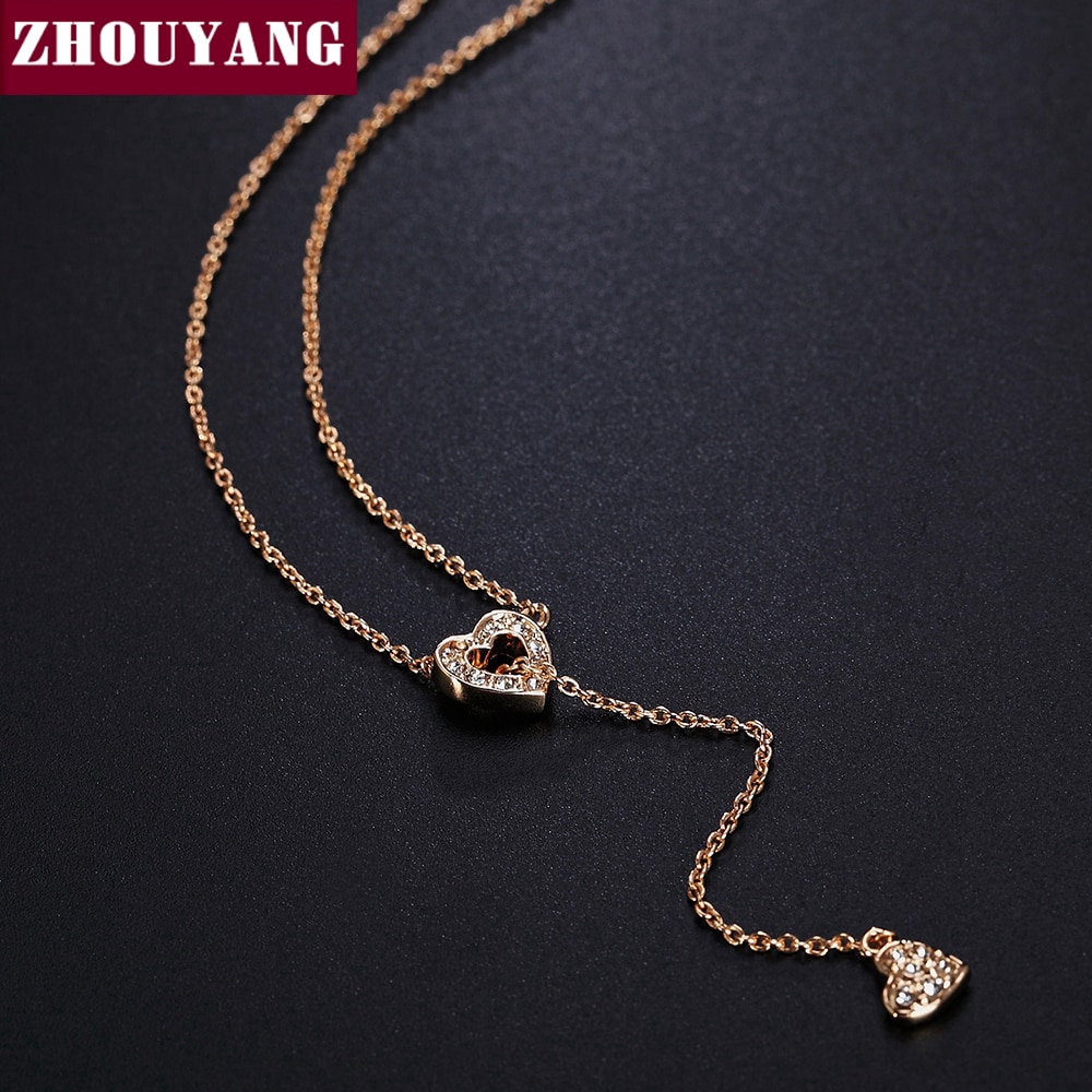 ZHOUYANG สร้อยคอสำหรับผู้หญิงหัวใจเชื่อมเครื่องประดับหัวใจกุหลาบสีทองแฟชั่นจี้ทำด้วยคริสตัลออสเตรีย ZYN159
