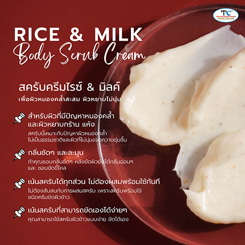 Thaicream สครับมิลค์โปรตีน & ไทยครีม ครีมสครับขัดผิว นมข้าว Rice & Milk Body Scrub 40 g