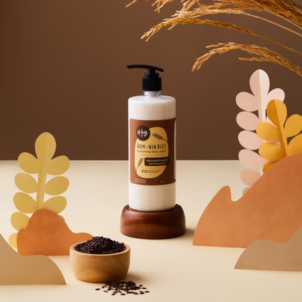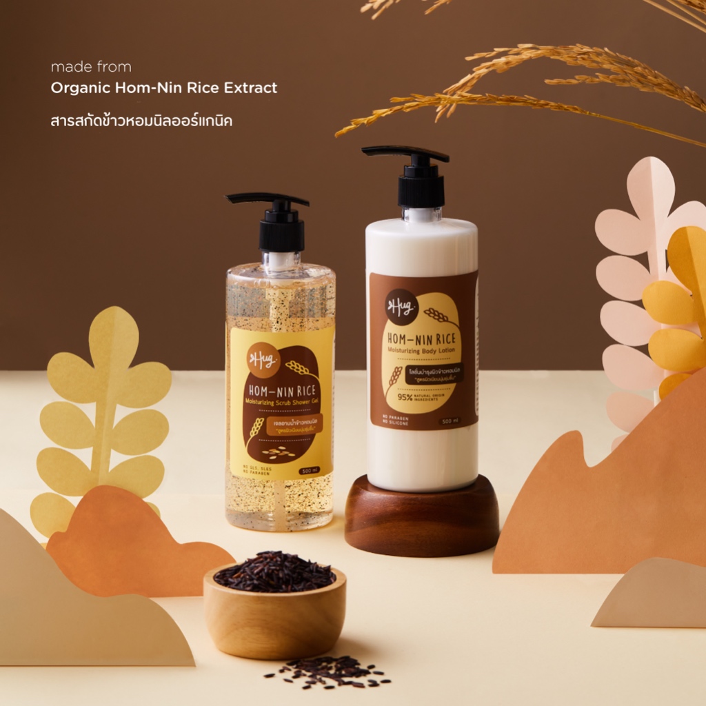 Hug โลชั่น บำรุงผิว ข้าวหอมนิล สูตรชุ่มชื้นพิเศษ ส่วนผสมจากธรรมชาติ 95% [Hom-Nin Rice Moisturizing Body Lotion] - 500ML