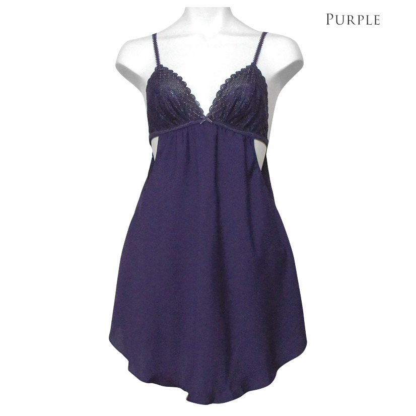 Annebra ชุดนอน ผ้าซาติน สายเดี่ยว คู่กางเกงในเข้าชุด Satin Babydoll Nightwear Set รุ่น AN8-664 สีม่วง