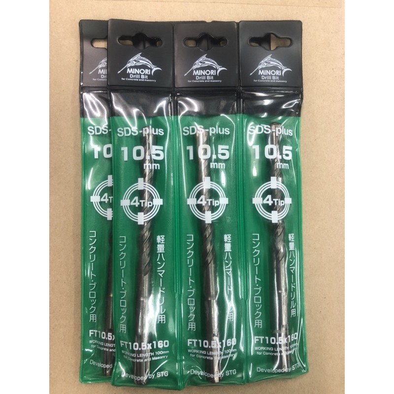 MINORI เกรดญี่ปุ่น ดอกสว่านเจาะปูน 4 เขี้ยว ดอกสว่านโรตารี่ 10.5 x 160 มม, 12.7 x 160 มม, 17 x 210 มม ( 1 ดอก) มิโนริ