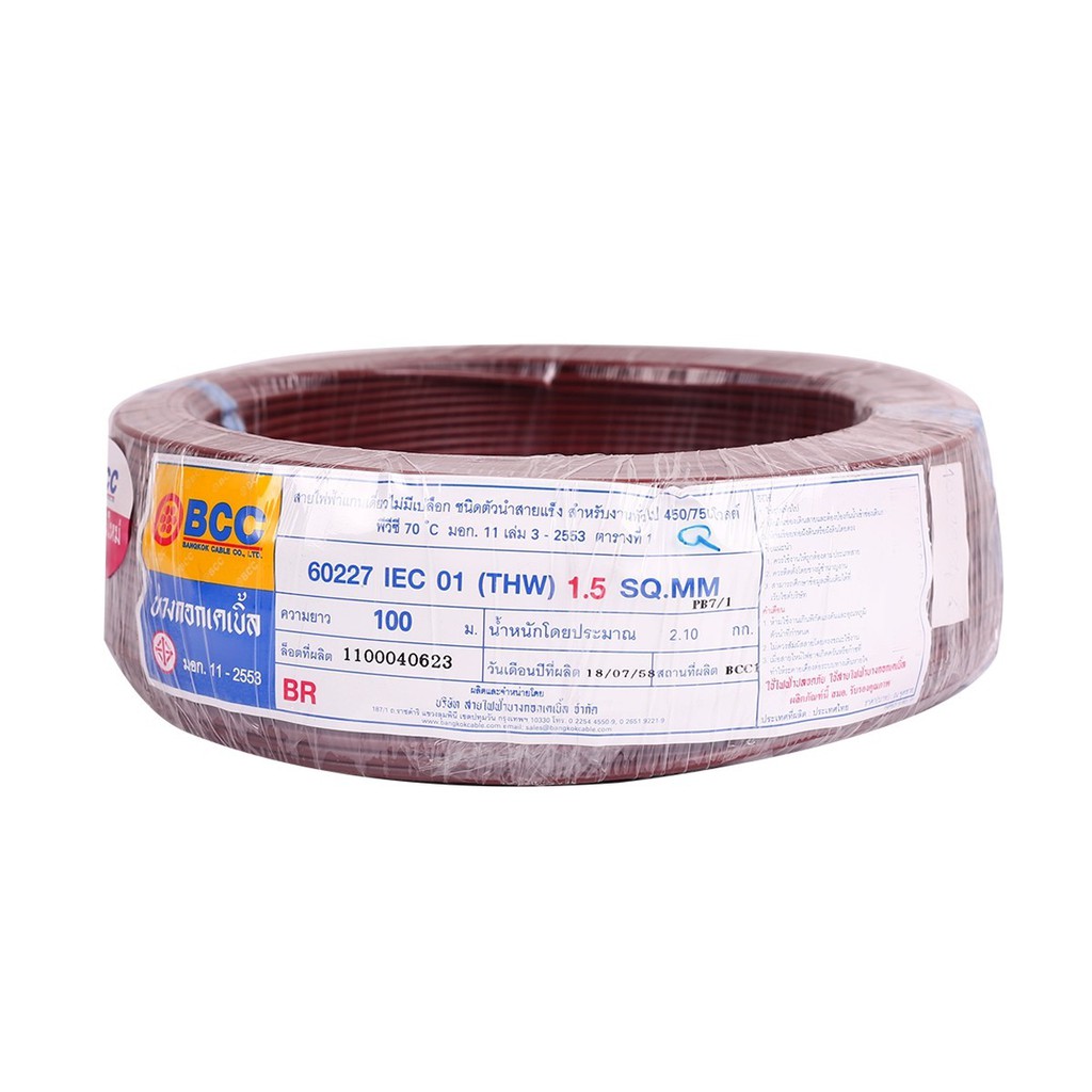 BCC สายไฟ IEC01 (THW) 1x1.5 Sqmm. ยาว 100 เมตร สีน้ำตาล |ROL|