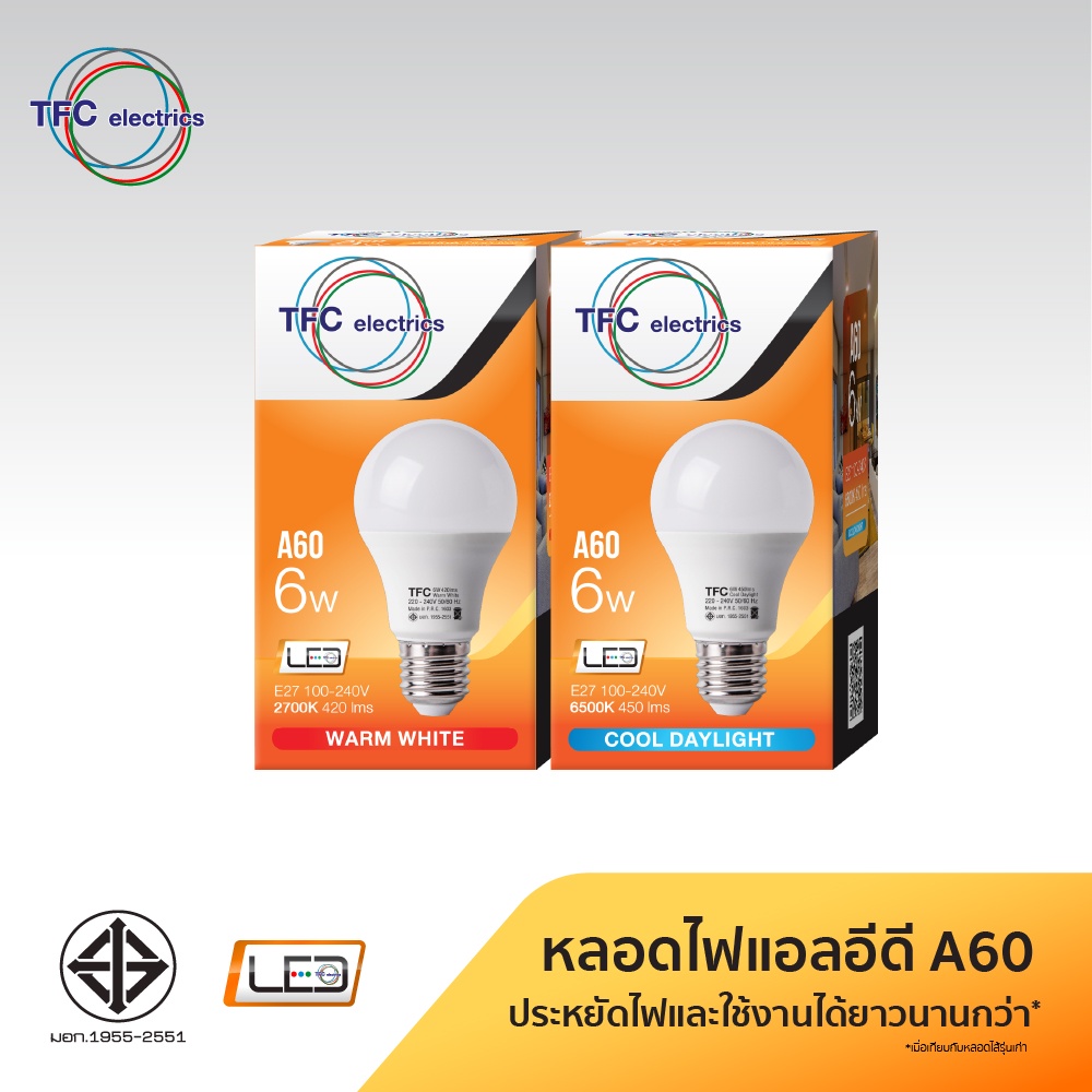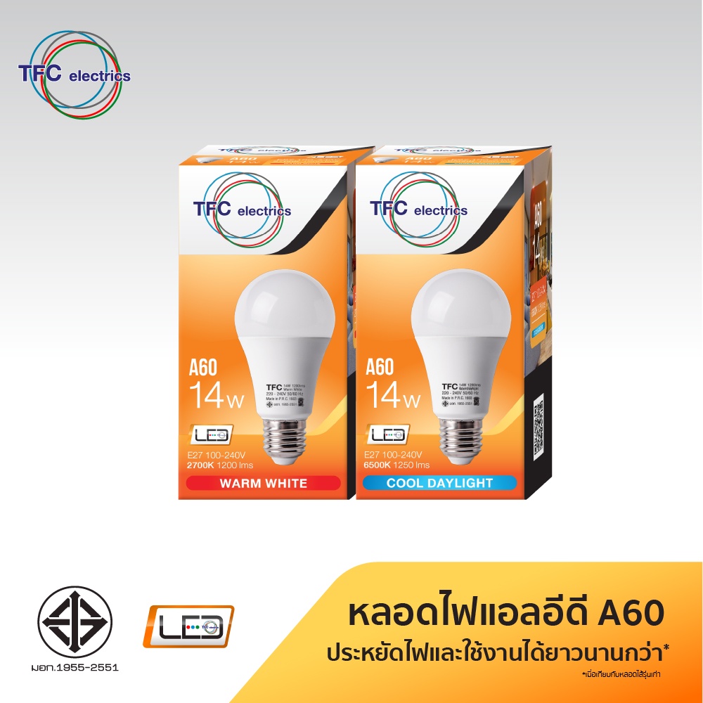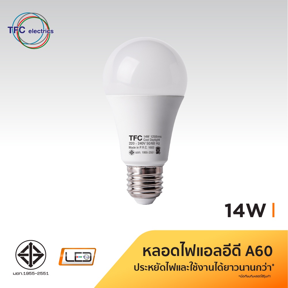 TFC หลอดไฟ LED Bulb A60 6W 14W E27 รุ่นสเปคสูง 30,000 ชม.