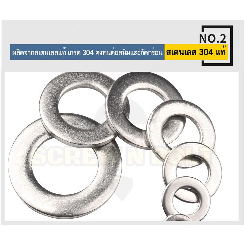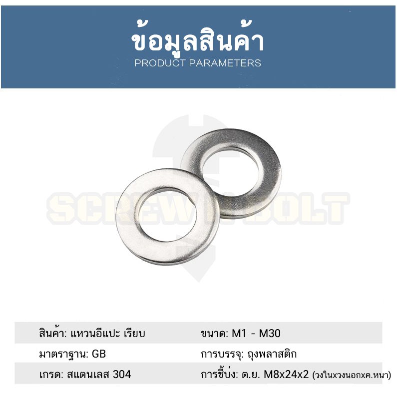 แหวนอีแปะ แหวนเรียบ แหวนรอง แบบหนา แบบบาง สแตนเลส 304 - M8 M10 / Flat Washer SUS304