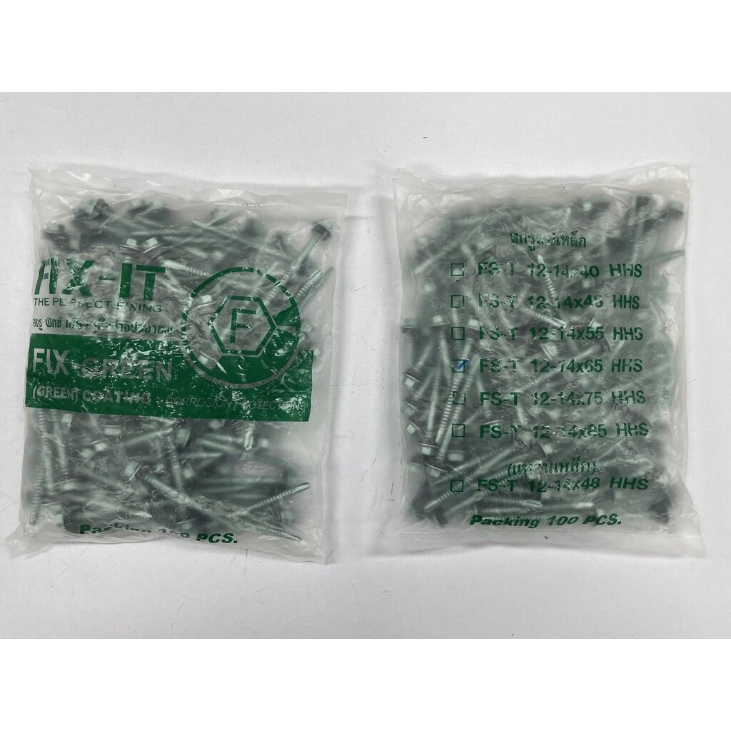 สกรูปลายสว่าน สกรูยึดหลังคาเมทัลชีท แปเหล็ก 12-14 x 65 มม. (20 / 100ตัว) FIX-IT GREEN Fixing Screws
