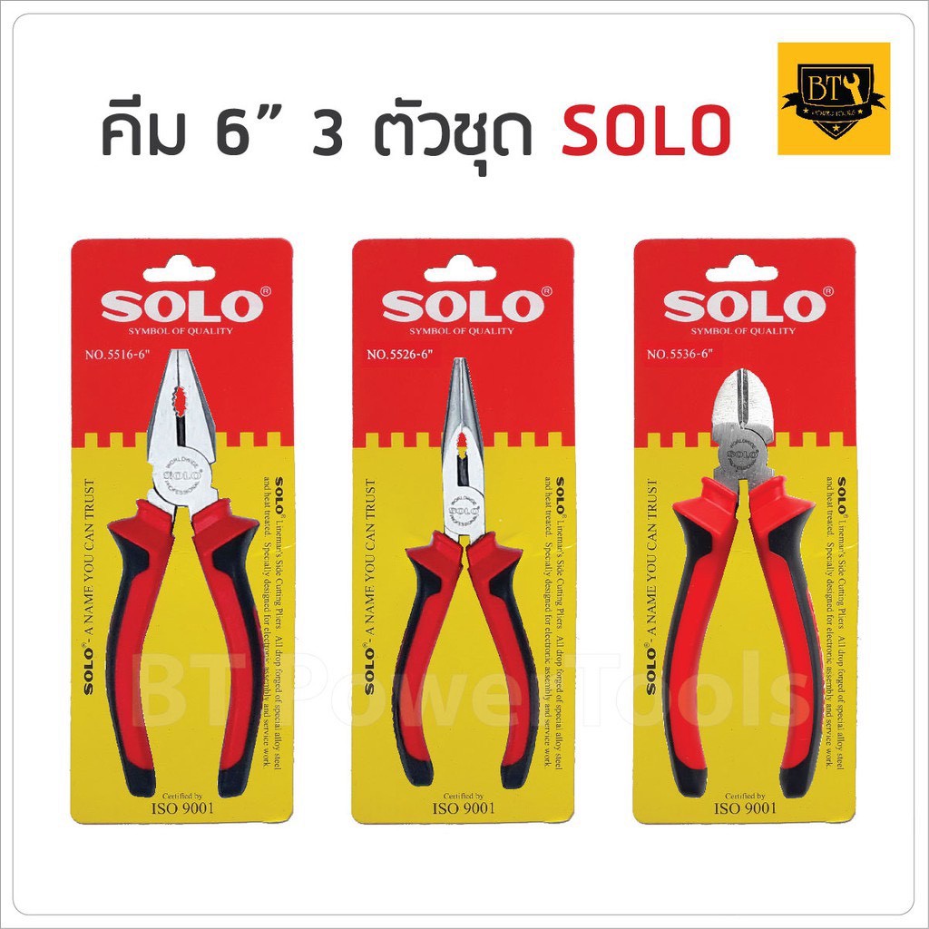 SOLO คีมช่าง 6 นิ้ว 3 ตัวชุด คีมปากจิ้งจก คีมปากแหลม คีมปากเฉียง ตัวคีมทำจากเหล็กกล้าโครเมียมอัลลอย พื้นผิวเคลือบ