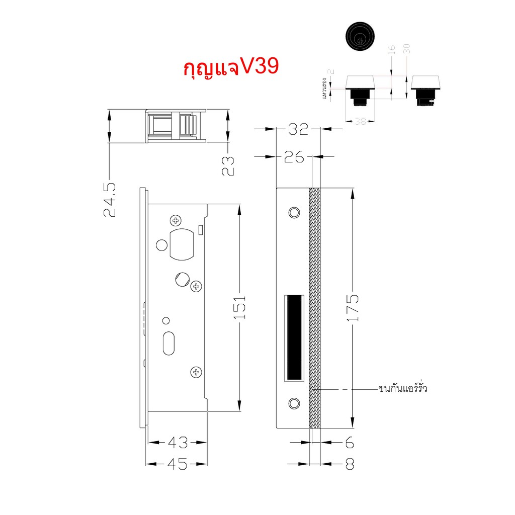V39-กุญแจบานเลื่อนและบานสวิง- แบรนด์(วีวีพี) กุญแจใช้กับประตูมีกรอบอลูมิเนียม VVP(วีวีพี) มี 4 สีให้เลือก