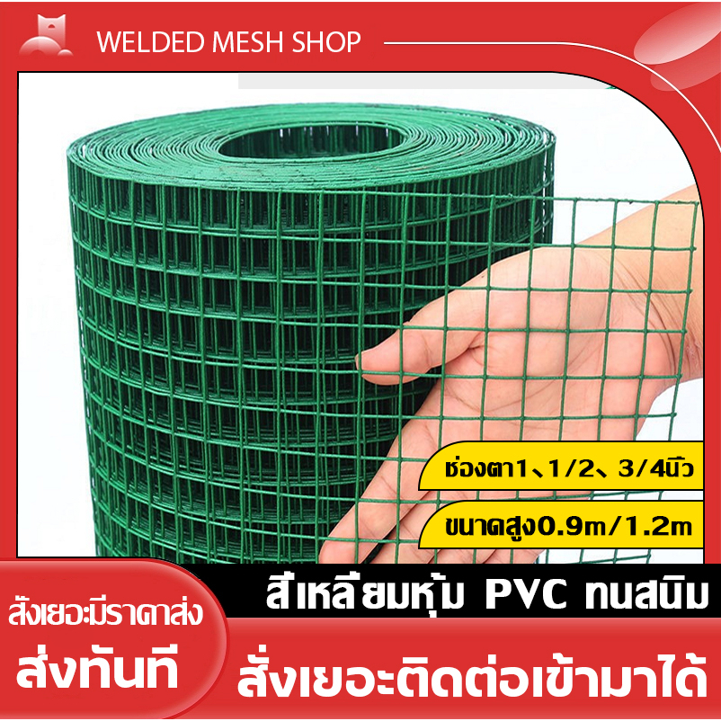 🎀ยกม้วน30m🎀 ตาข่ายลวดสี่เหลี่ยมชุบPVC(เขียว/ขาว/สีดำ) ช่องตา1' ลวด1.2mm ตะแกรงกรงไก่กันสนิม PVC ลวดตาข่าย ตาข่ายเหล็ก