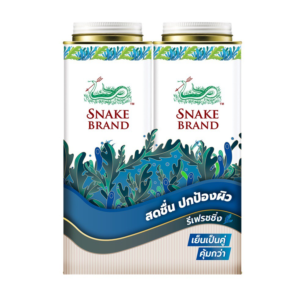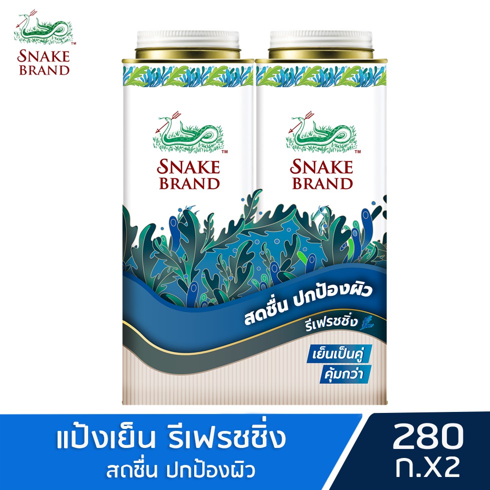 แป้งเย็นตรางู รีเฟรชชิ่ง 280 กรัม แพ็คคู่ x2 กระป๋อง Snake Brand Cooling powder Refreshing 280g.x2 แป้งเย็น