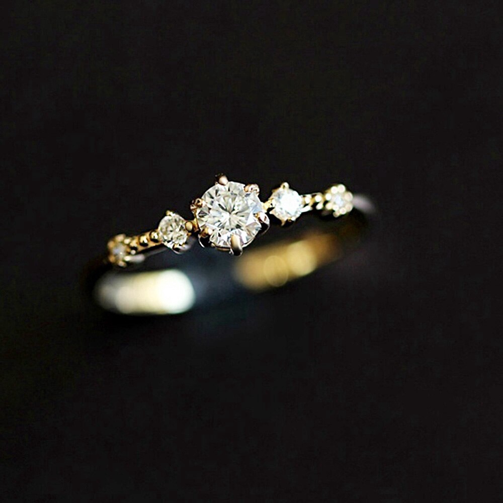 Zhouyang(โจวหยาง)แหวนสำหรับผู้หญิงสไตล์ Minimalist หมั้นเงา zircons ไฟคริสตัลสีเหลืองสีทองเครื่องประดับแฟชั่น KCR174