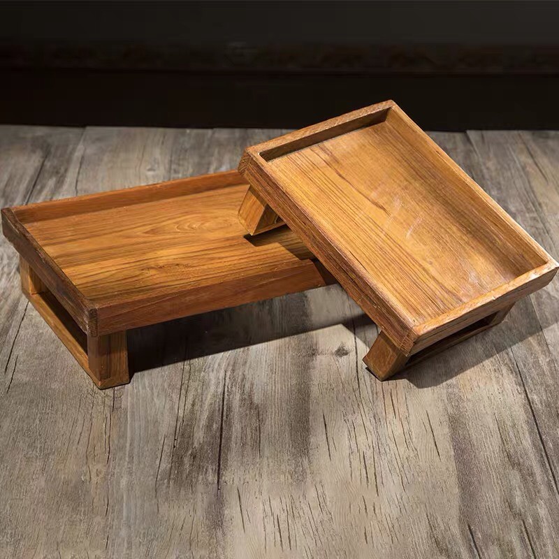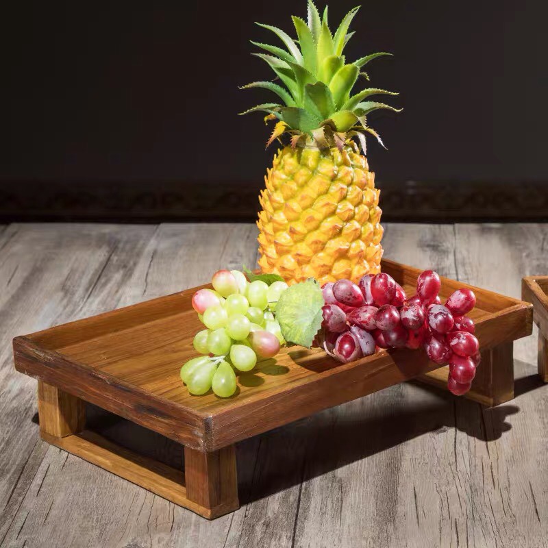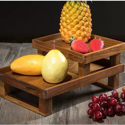 THAILUCKY ถาดผลไม้ ชั้นวางผลไม้ วางขนม วางเบเกอร์รี มีขา ถาดใส่ของไม้สัก