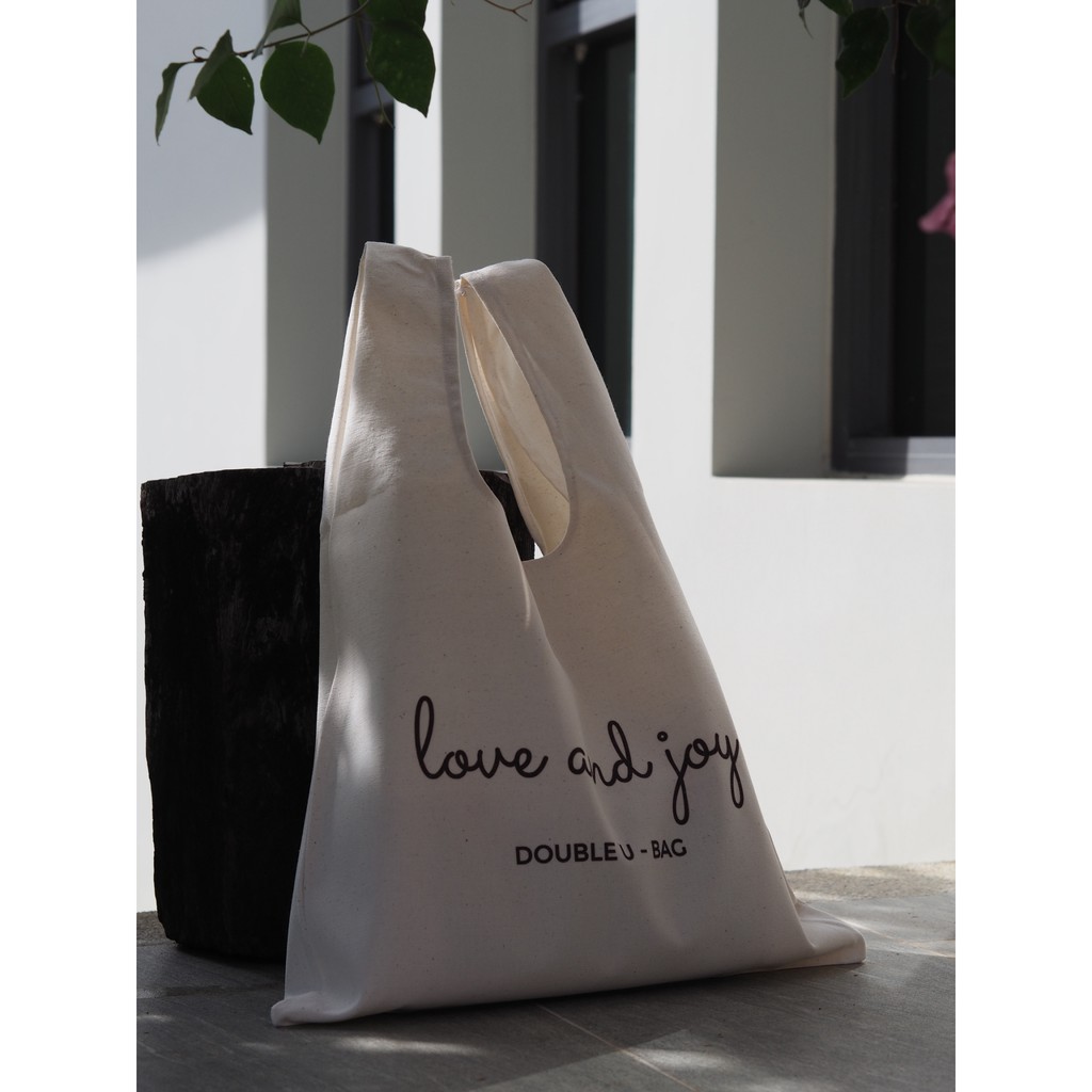 ถุงผ้าดิบหนา ขนาดกระทัดรัด ทรงถุงพลาสติก HOBO BAG รุ่น LOVE AND JOY - DOUBLE U BAG