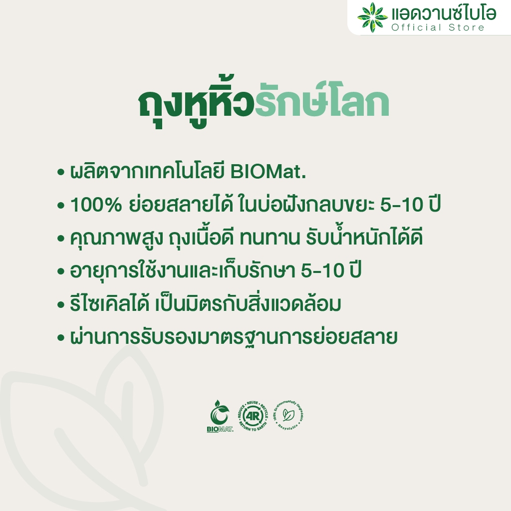 AdvanceBIO : ถุงหูหิ้วรักษ์โลกย่อยสลาย 6x11นิ้ว (ยกลัง 12,500 ใบ) ถุงบรรจุภัณฑ์ รุ่น W-1005