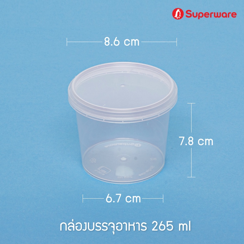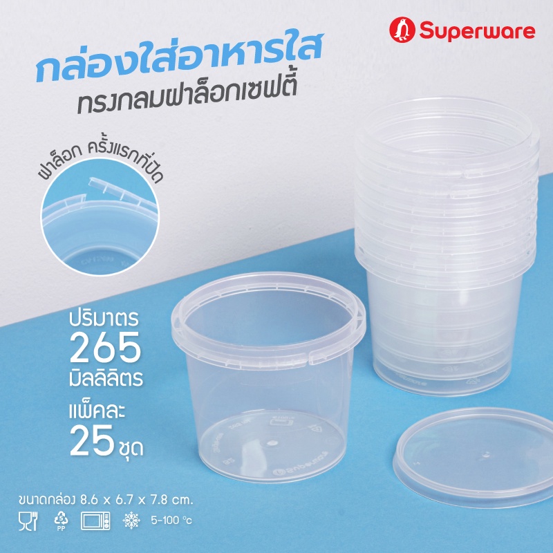 Srithai Superware กล่องพลาสติกใส่อาหาร กระปุกพลาสติกใส่ขนม ทรงกลมฝาล็อค ขนาด 265 ml. จำนวน 25 ชุด