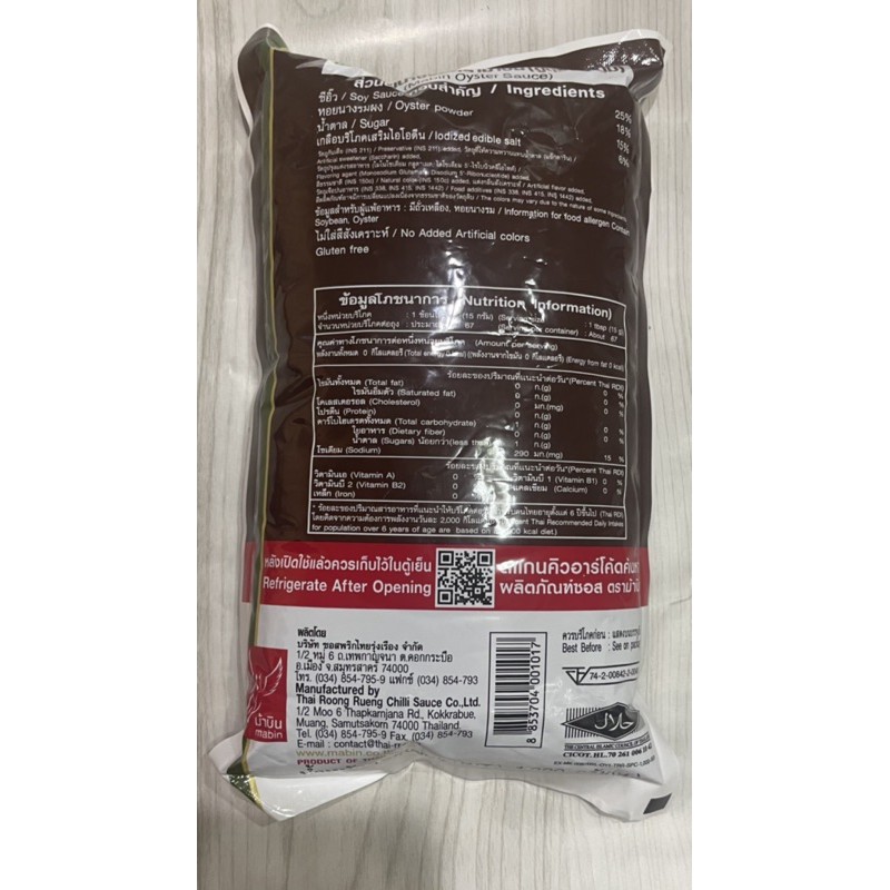 ซอสหอยนางรม ตราม้าบิน น้ำหนัก 1 กิโลกรัม ไม่ใส่สีสังเคราะห์ และปราศจาก Gluten