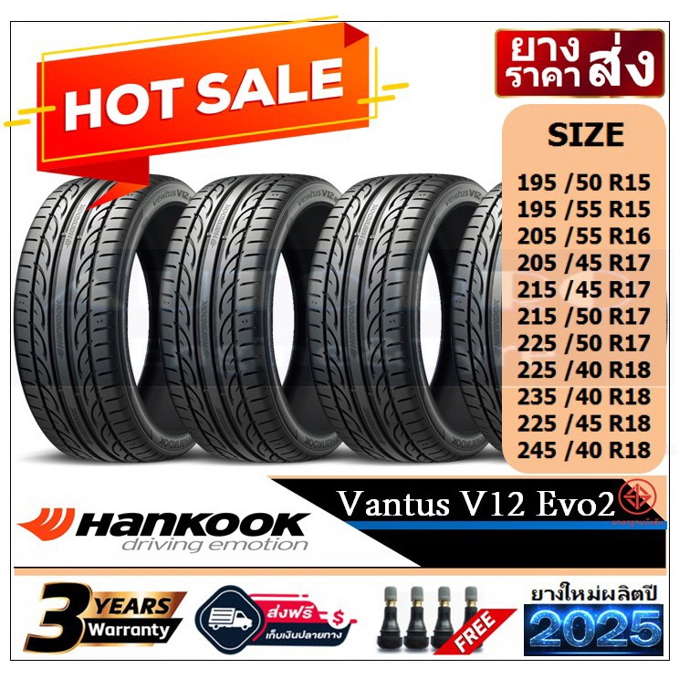 HANKOOK V12 EVO2 |ชุด 4 เส้น| ยางรถยนต์สำหรับรถเก๋ง ขอบ 15",16",17",18" ยางใหม่ปี 24,25 |เงินสด/ส่งฟรี/เก็บเงินปลายทาง|
