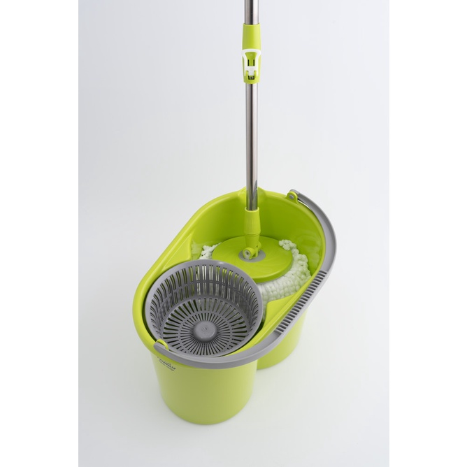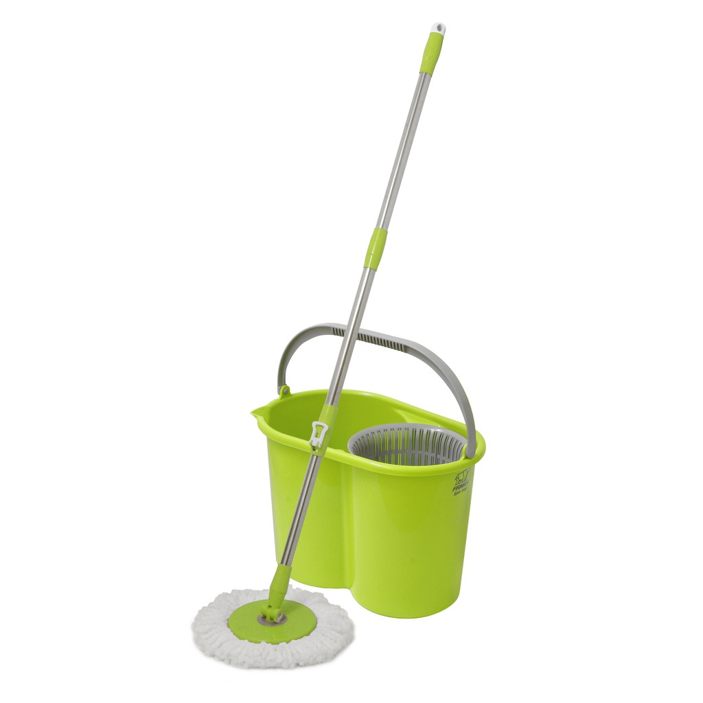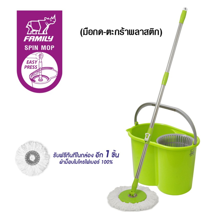 Family ถังปั่นถูพื้นแบบมือกด ตะกร้าปั่นพลาสติก สีเขียว แถมฟรีผ้าม๊อบ 1 ผืนในกล่อง