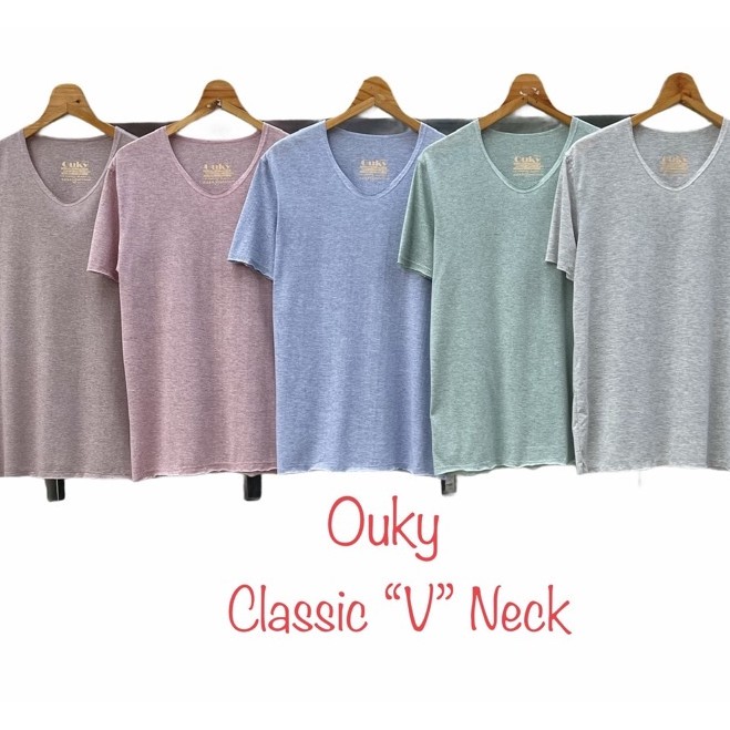 เสื้อยืด คอวี ผ้าคอตตอนผสม สีท๊อปดราย Ouky