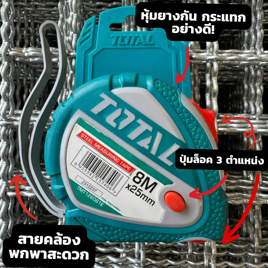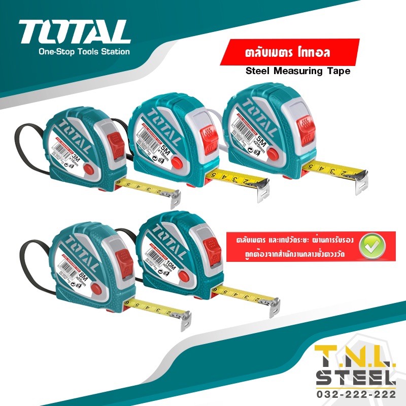 ตลับเมตร 3M/5M/8M/10M TOTAL มีหลายขนาด ( TMT126031E / TMT126051E / TMT126052E / TMT126081E / TMT126101E )