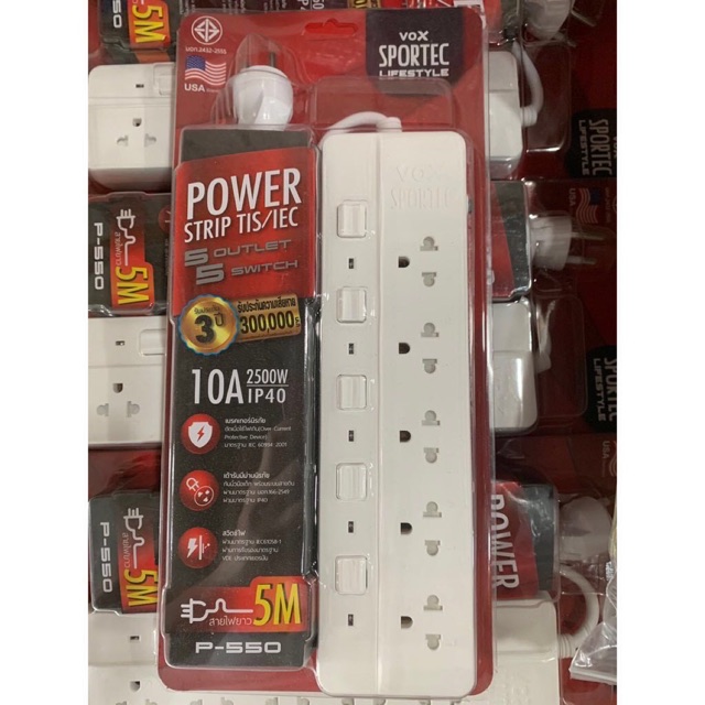 ปลั๊กไฟ มอก VOX 4 / 5 ช่อง สวิตซ์แยก รุ่น P-440 / P-550 (3 เมตร / 5 เมตร / 10เมตร)