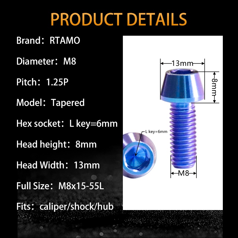 RTAMO Titanium Gr5 M8(#12)x15--55L M10(#14) 45 50 60 70 คาลิปเปอร์ ช็อก ส้อม