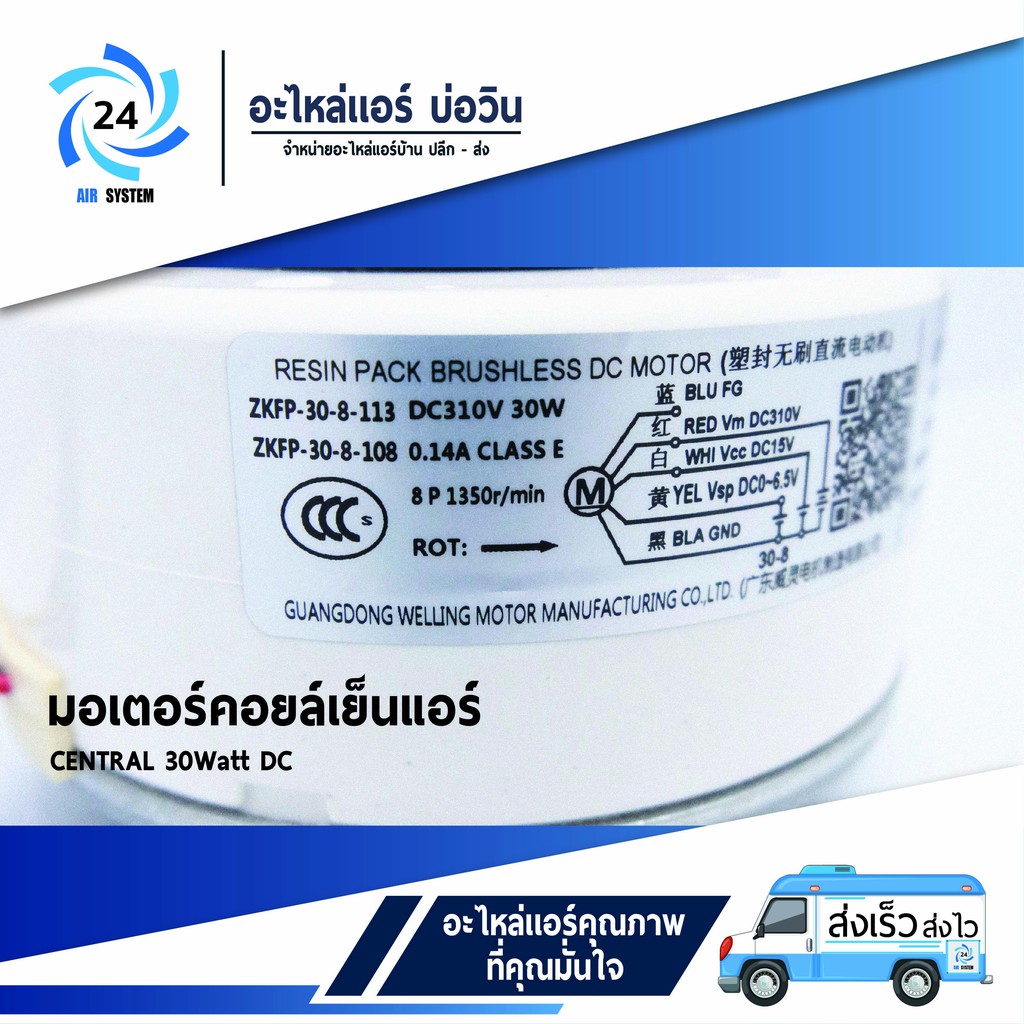 มอเตอร์แอร์ Central Air ( ZKFP-30-8-113 ) 30W DC มอเตอร์คอยเย็นแอร์เซ็ลทรัล