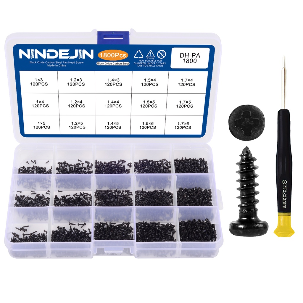 NINDEJIN 1800 ชิ้น/เซ็ตสกรูขนาดเล็กชุดหัวกลม Tapping Screw ชุด M1 M1.2 M1.4 M1.5 M1.7