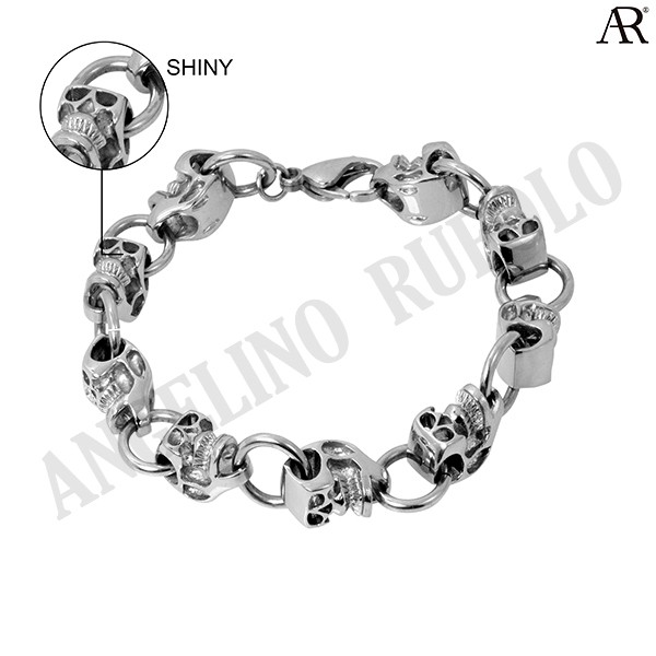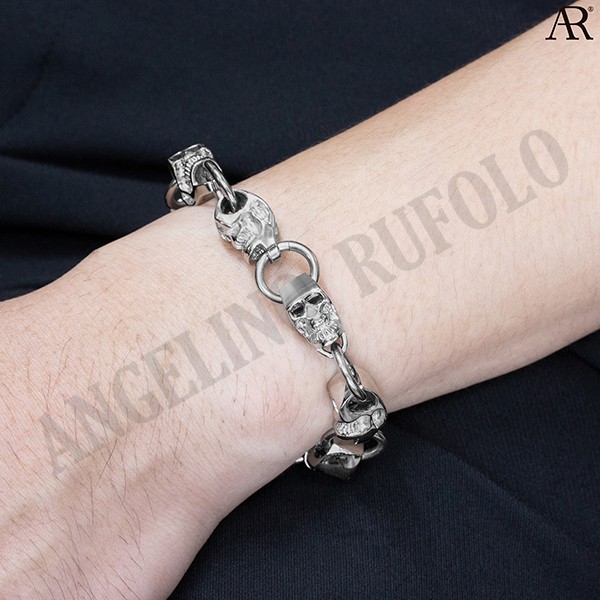 ANGELINO RUFOLO Bracelet ดีไซน์ Skull Chain สร้อยข้อมือผู้ชาย Stainless Steel 316L(สแตนเลสสตีล)คุณภาพเยี่ยม สีเงิน