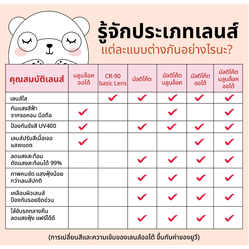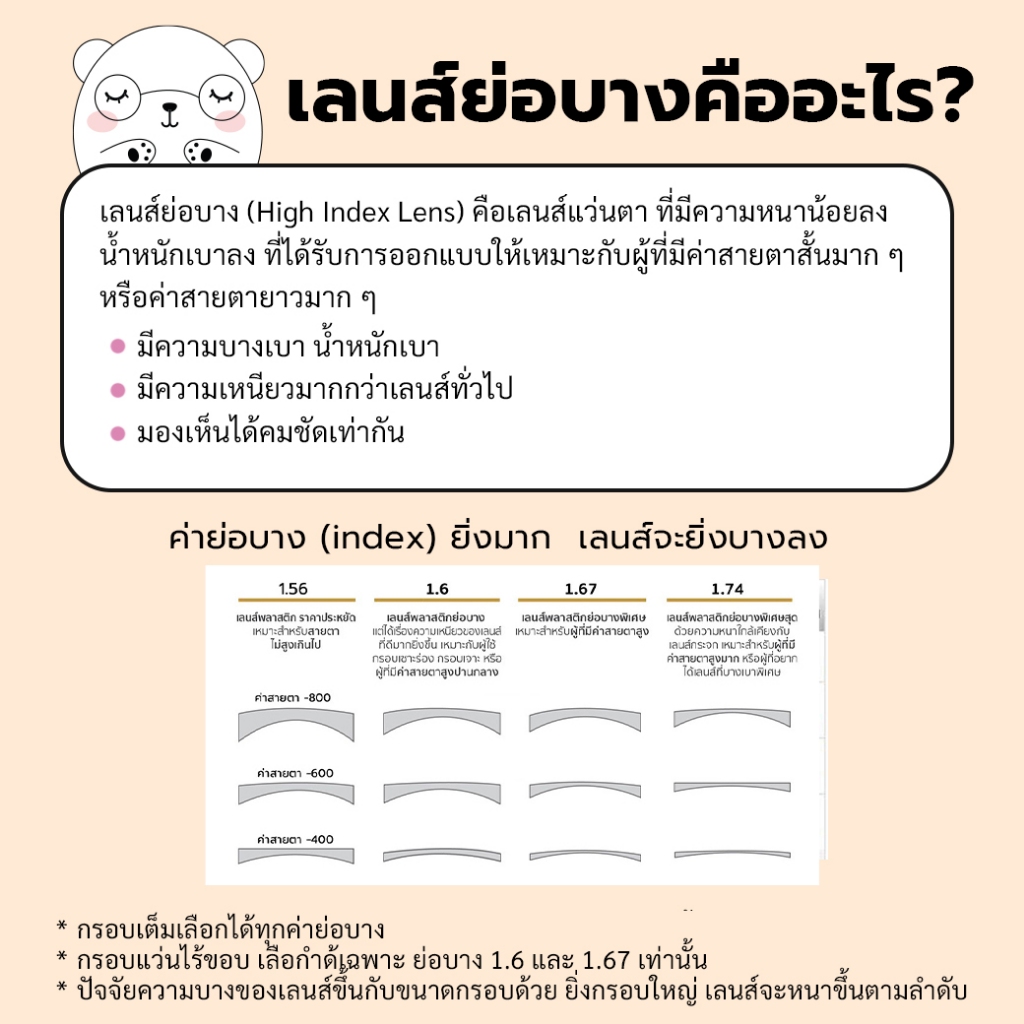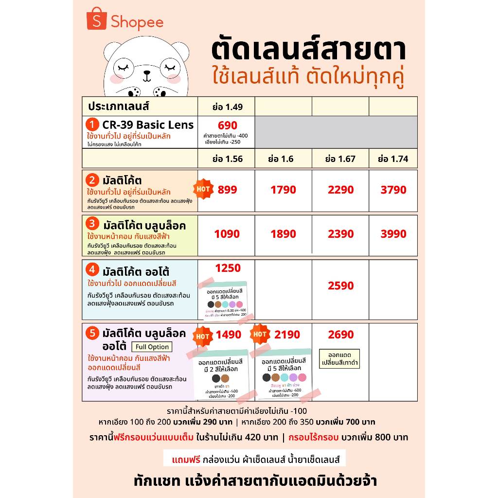 แว่นสายตา สั่งตัดแว่นตามค่าสายตา ตัดเลนส์ มัลติโค้ต บลูบล็อค ออโต้ 1.56 แว่นสายตาสั้น แว่นสายตายาว