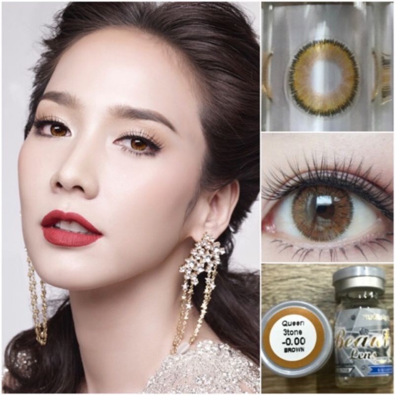 คอนแทคเลนส์ Queen Brown & Gray ควีนส์ น้ำตาล & เทา แบรนด์บิวตี้เลนส์ Beautycontactlens เลนส์อั้มค่าอมน้ำ55% สายตา50-1000