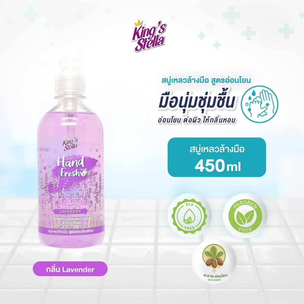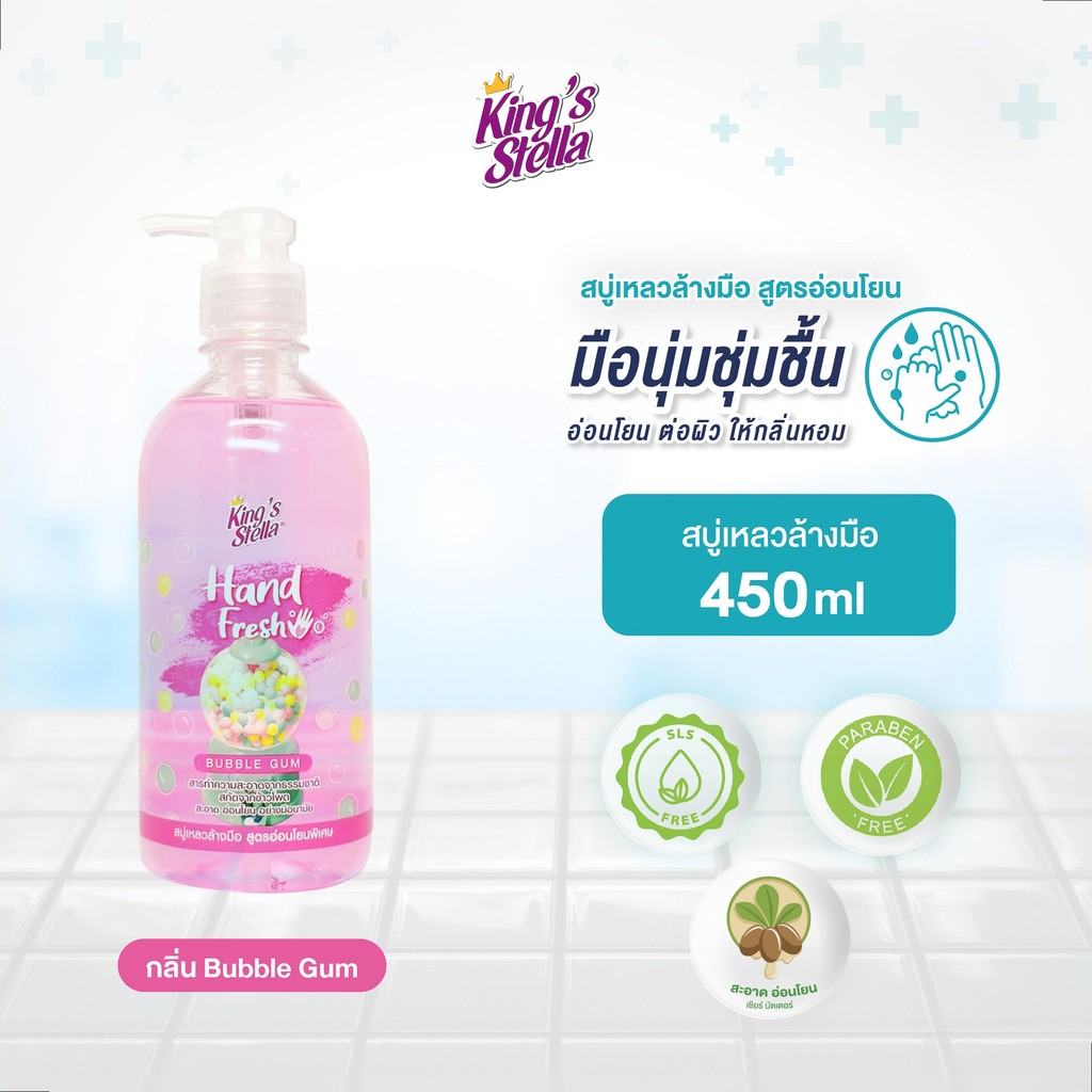 King’s Stella (คิงส์สเตลล่า) Hand Fresh Extra Mild Liquid Soap สบู่เหลวล้างมือ สูตรอ่อนโยนพิเศษ มือชุ่มชื้น 450ml