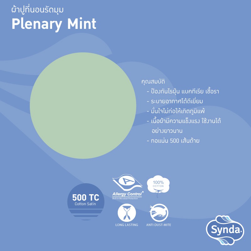 [Clearance Sale] Synda ผ้าปูที่นอนรัดมุม Cotton Satin 500 เส้นด้าย รุ่น PLENARY GREEN,PLENARY MINT