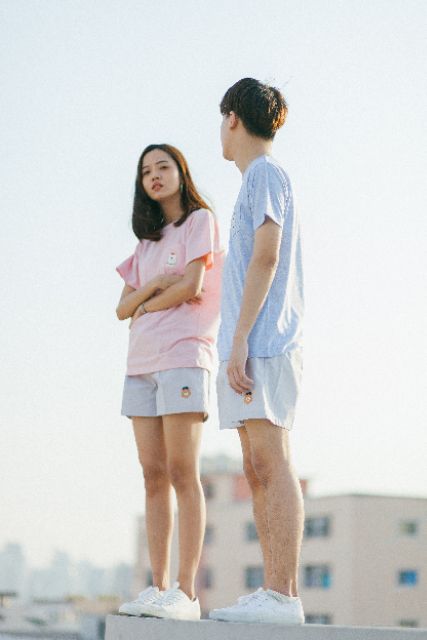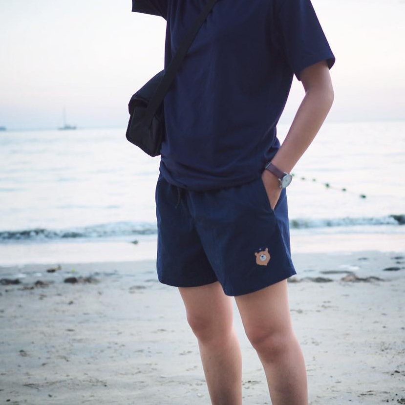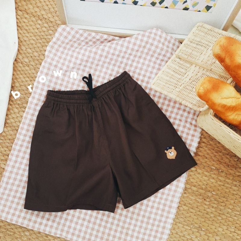 Basic shorts กางเกงขาสั้นเอวยางยืดผ้า Cotton - ลายปัก Brown bear