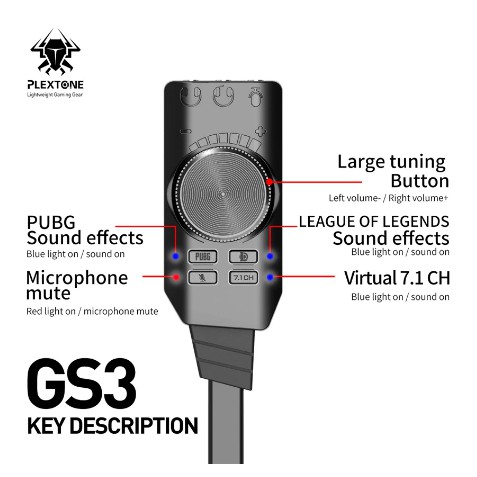 Plextone GS3 Mark II Sound Card Adapter Virtual 7.1 CH ซาวน์การ์ด สำหรับ คอมพิวเตอร์ โน้ตบุ๊ค