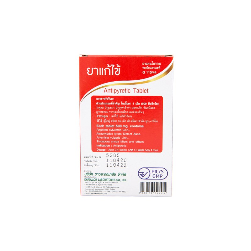 Khaolaor ขาวละออ ยาแก้ไข้ชนิดเม็ด ยาสามัญประจำบ้าน 10 เม็ด/กล่อง (ชุด 12 กล่อง)