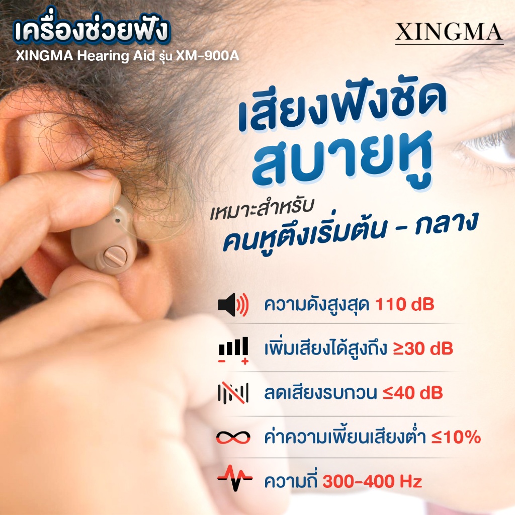 เครื่องช่วยฟัง แบบซ่อนในหู XINGMA รุ่น XM-900A Hearing Aid ลดเสียงรบกวน หูตึง หูหนวก ใส่สบาย รับประกันศูนย์แท้ 1 ปี