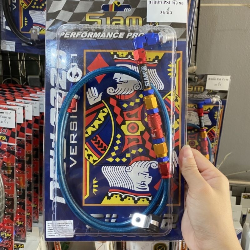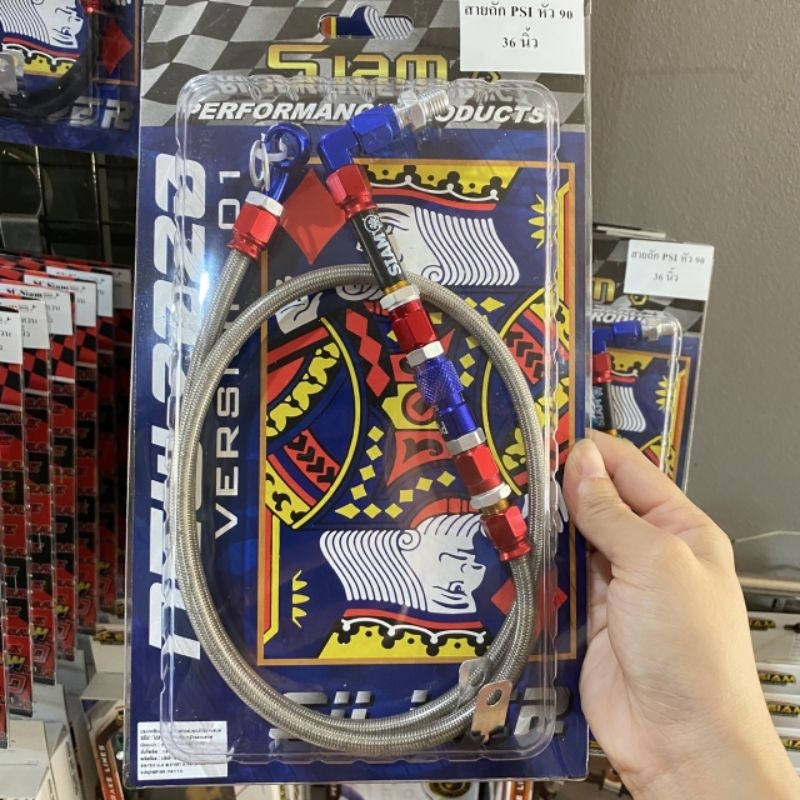 สายถักเบรค PSI หัว90 ยาว36นิ้ว SC SIAM กล่องสีน้ำเงิน มีประกัน