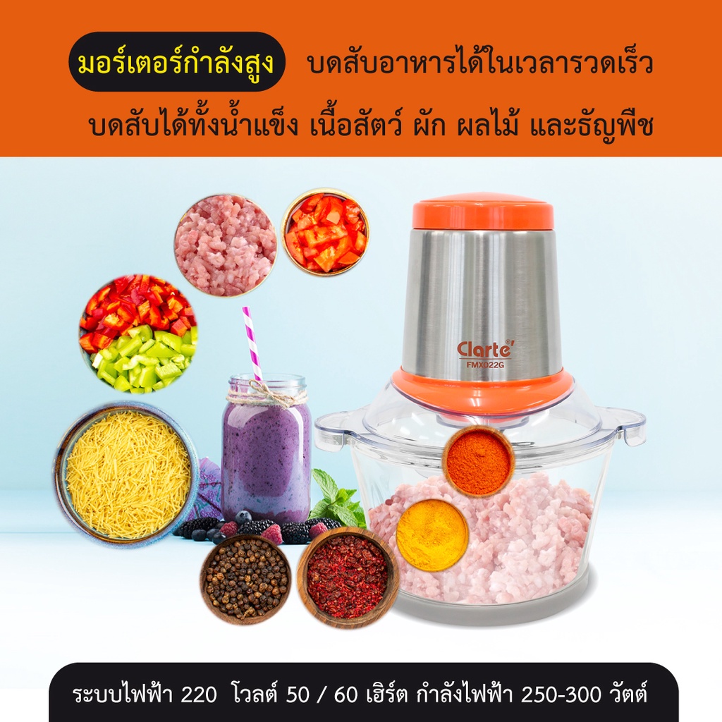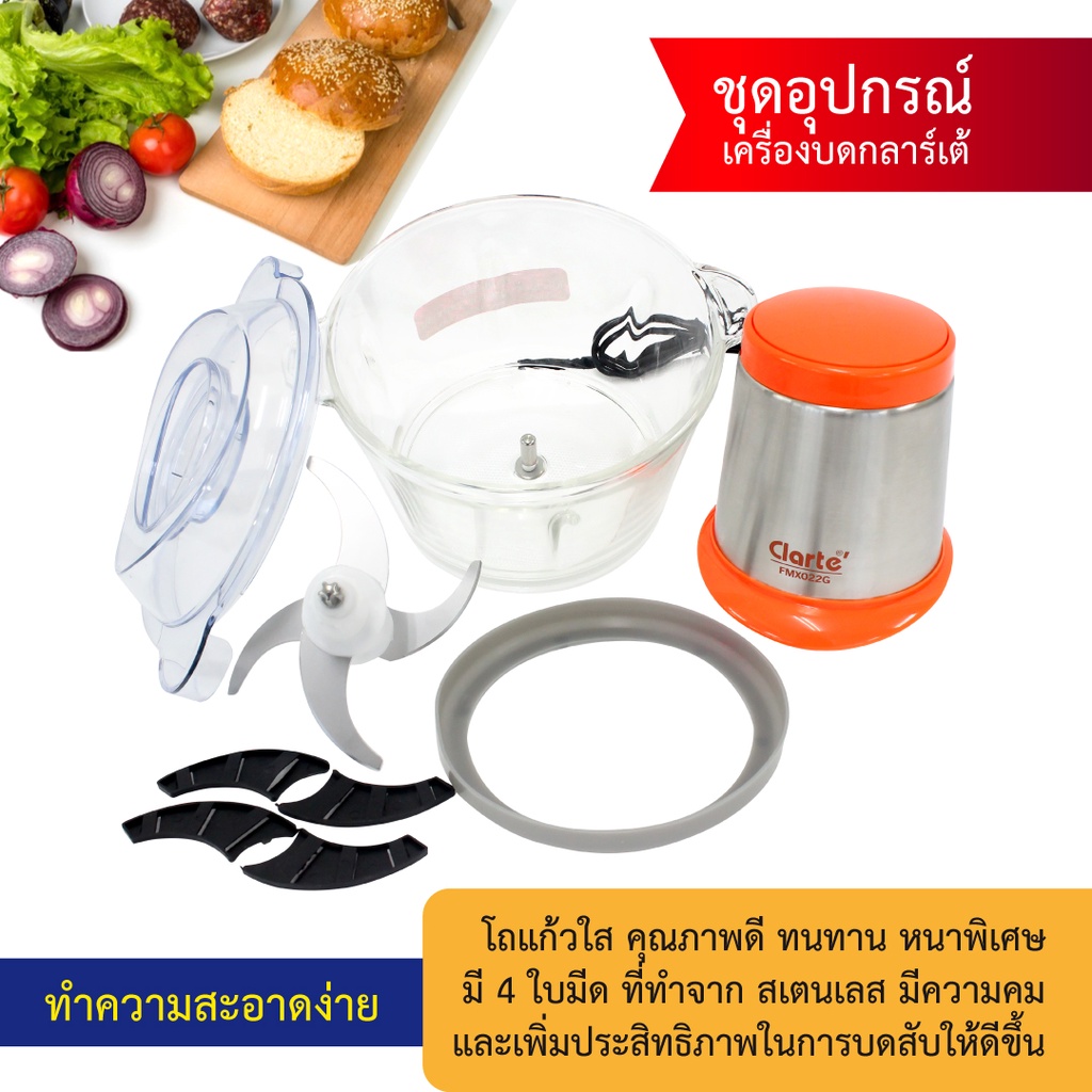 Clarte' เครื่องบดสับอาหารอเนกประสงค์โถแก้ว 1.8 ลิตร รุ่น FMX022Gกำลังไฟฟ้า 250-300 วัตต์
