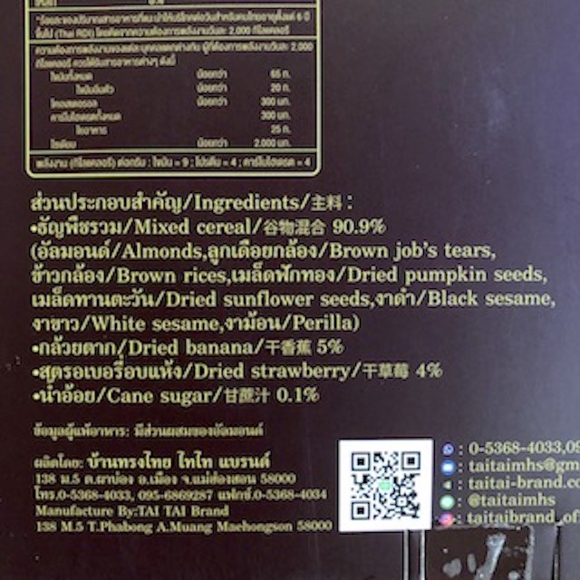 เจ ธัญพืบอบเเท่ง ซีเรียลบาร์ 120g (ตราไทไทแบรนด์) แคลต่ำ หวานน้อย Cereal Bar ธัญพืชเต็มๆคำ ใช้ความหวานจากน้ำอ้อยแท้