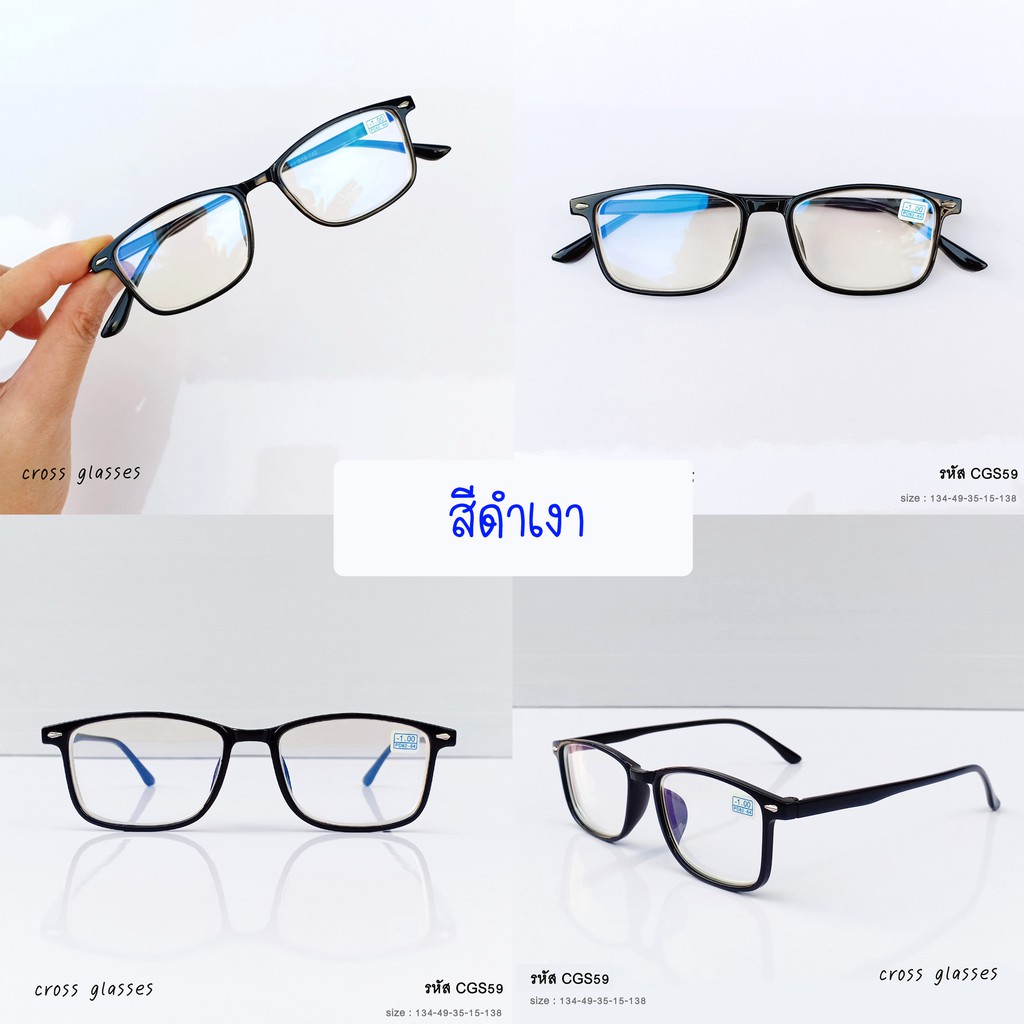 แว่นสายตาสั้นกรองแสง -1.0ถึง-6.0 และสายตาปกติ ทรงเหลี่ยม กรอบแว่นดัดงอได้ รหัส CGS59 พร้อมกล่อง+ผ้าเช็ดเลนส์
