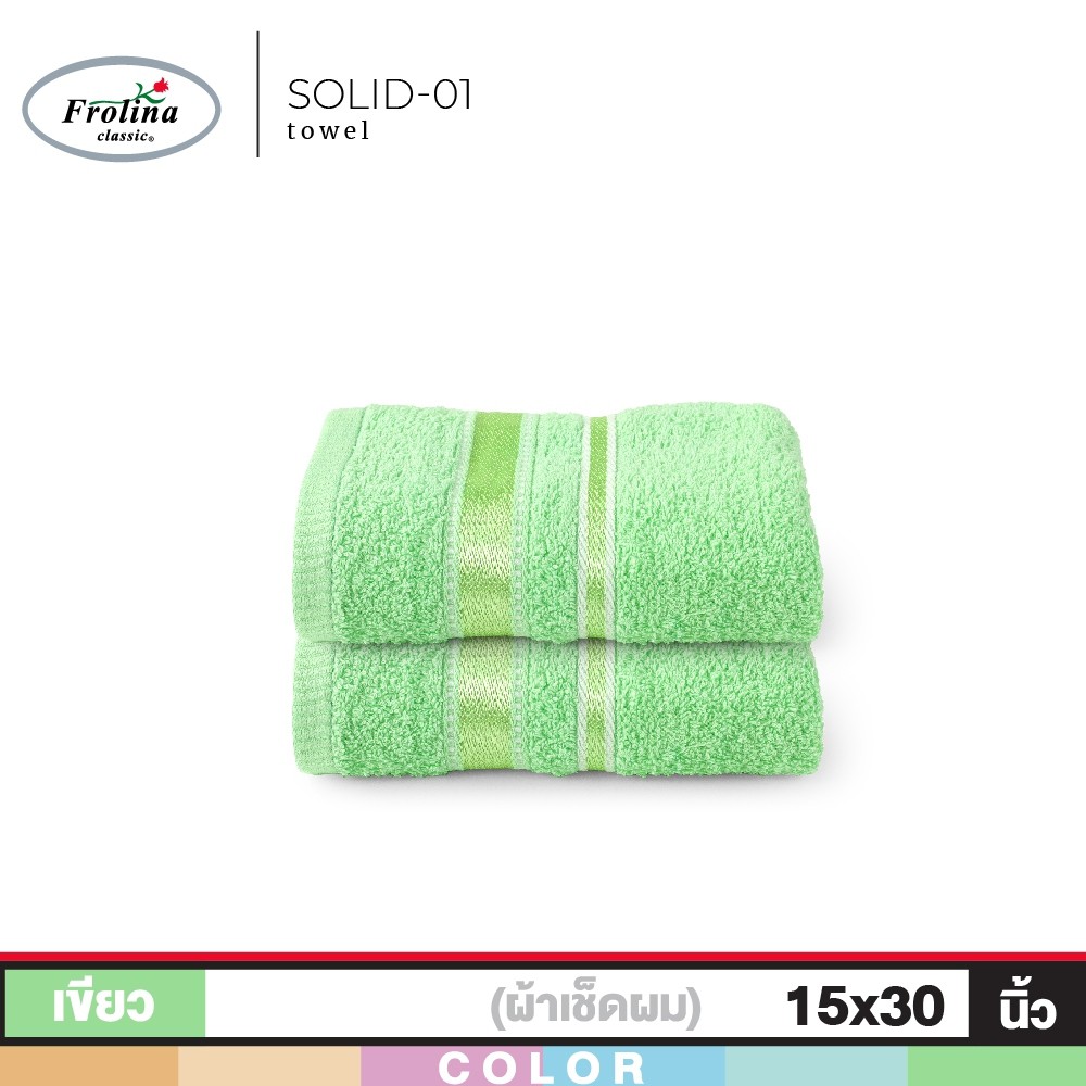 Frolina ผ้าขนหนูเช็ดผม ขนาด 15x30 นิ้ว Set 2 ผืน รุ่น Solid01