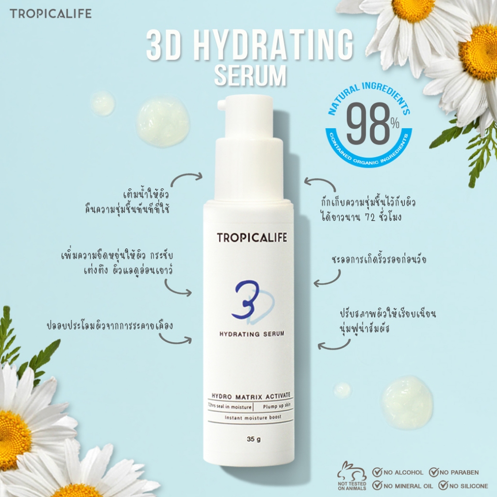 เซรั่มผิวชุ่มชื้น ลดผิวแห้งกร้าน ผิวแพ้ง่าย TROPICALIFE 3D MATRIX AQUA SKIN SERUM 35g