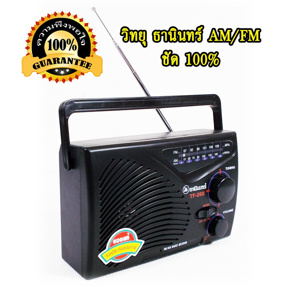 โค้ดNEWKAUN0000 ลด 80บาท [ฟรีสายต่อไฟบ้าน] วิทยุธานินทร์ของแท้ รุ่น TF-268 สีดำ รับประกัน 1 ปีเต็ม เล่น FM/AM ได้