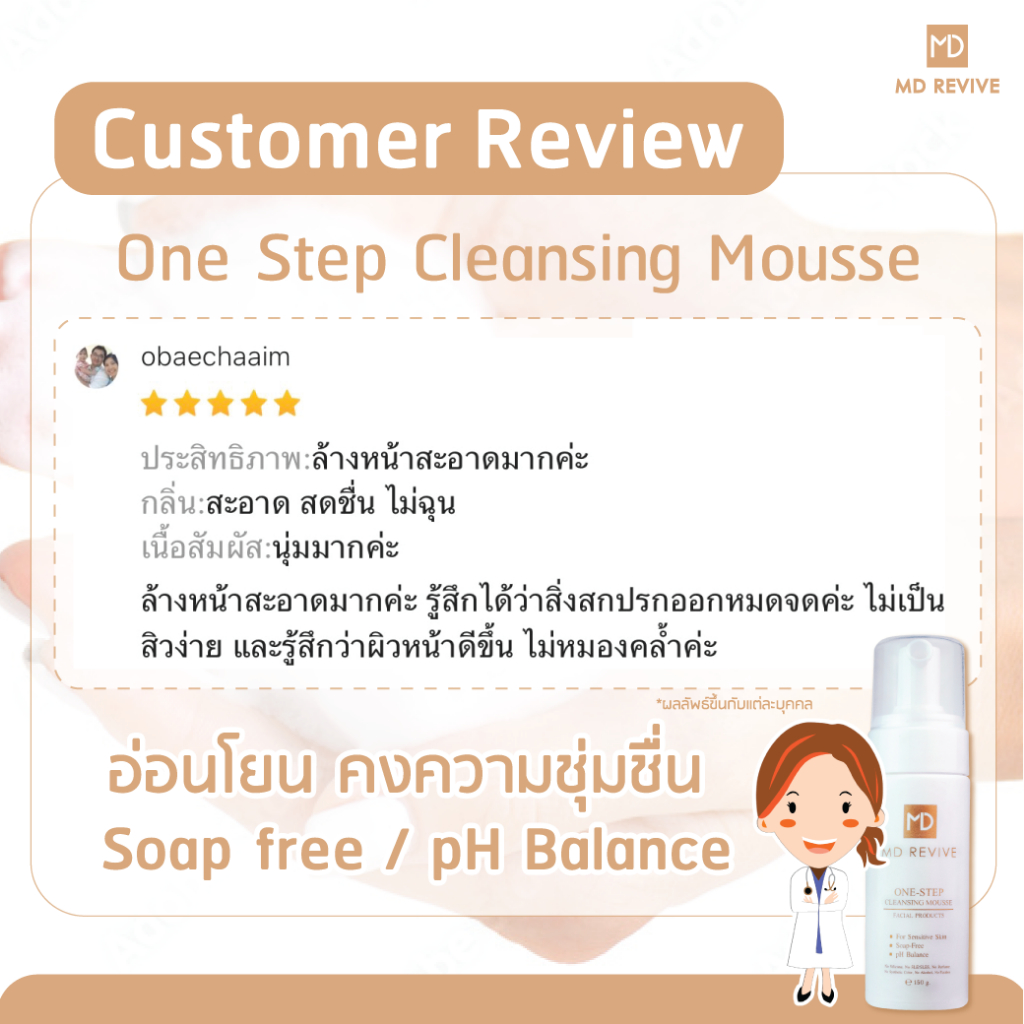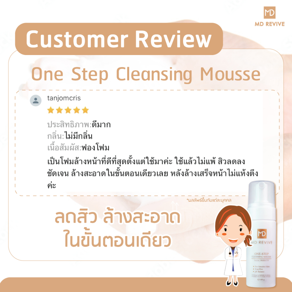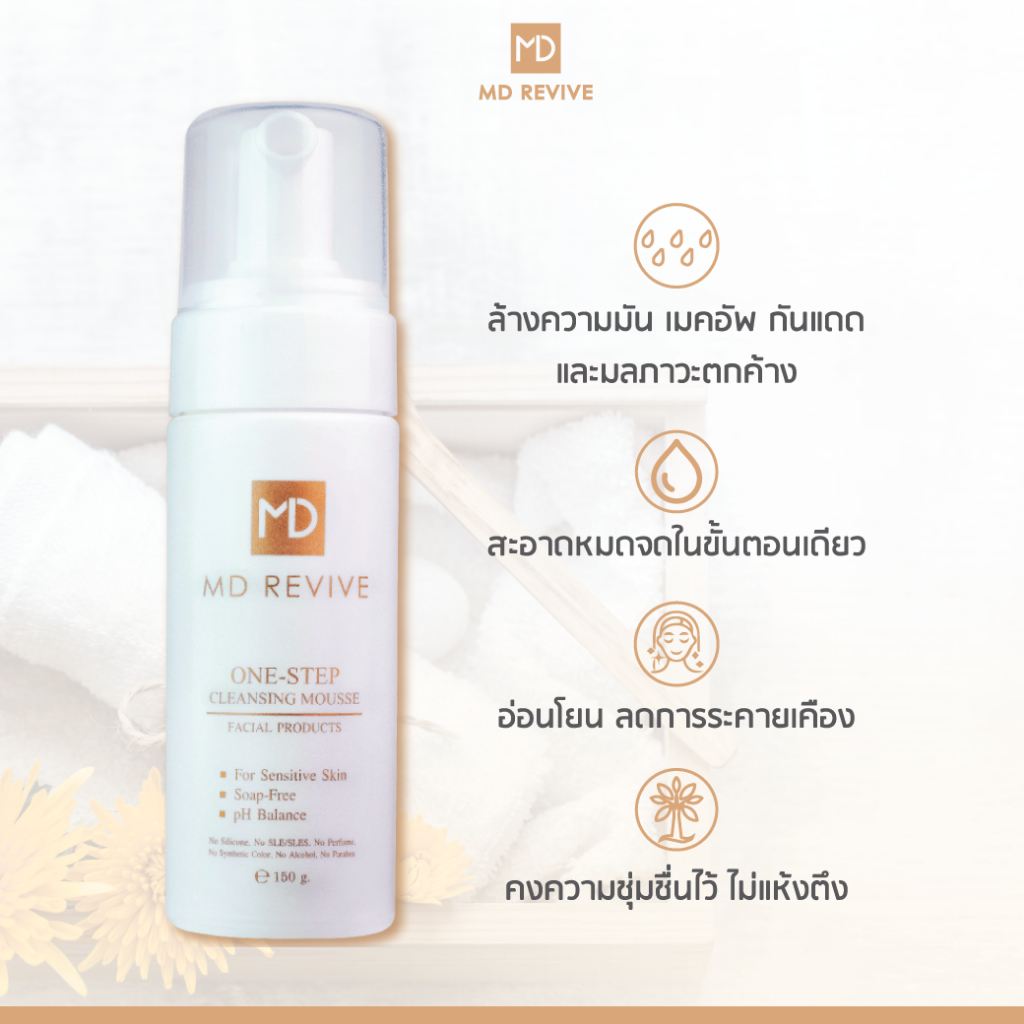 [ใหม่] MD REVIVE ONE-STEP CLEANSING MOUSSE โฟมล้างหน้าลดสิว คุมมัน ล้างเครื่องสำอาง สูตรอ่อนโยน คลีนซิ่งในขั้นตอนเดียว