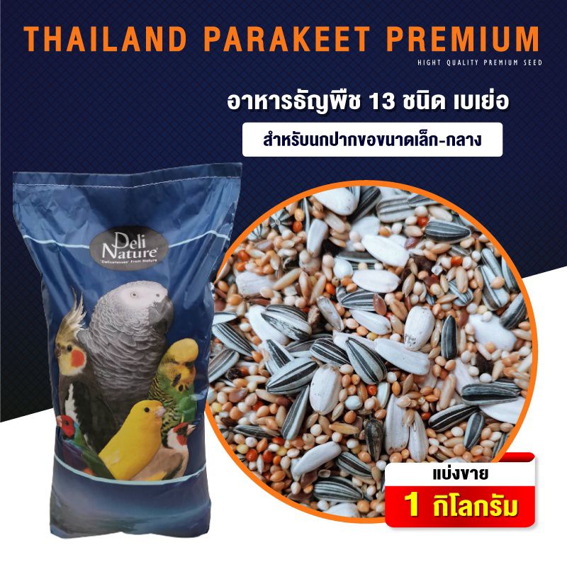 อาหารนก อาหารนกแก้ว อาหารนกหงส์หยก ขนมนก ขนมนกแก้ว ธัญพืช 13 ชนิด Deli Natrue แบ่งขาย ขนาด 1 กิโล